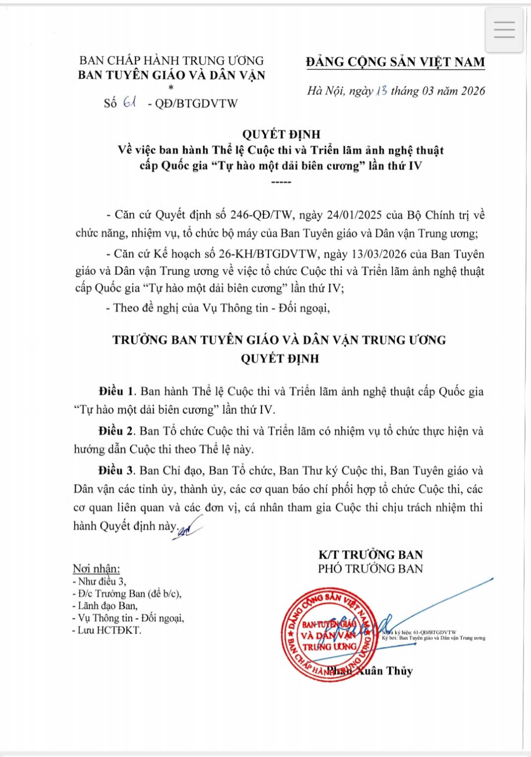 ☘️☘️☘️ Thực hiện Công văn số 363-CV/ĐU ngày 10/4/2026 của Đảng ủy xã Bình Minh về tuyên truyền, triển khai Cuộc thi và Triển lãm ảnh nghệ thuật cấp Quốc gia “Tự hào một dải Việt Nam” lần thứ IV, Trường Mầm non Bình Khương kêu gọi cán bộ, giáo viên, nhân viên và phụ huynh tích cực hưởng ứng tham gia.